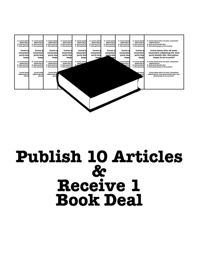 Publish 10 Articles & Receive 1 Book Deal Publish 10 Articles & Receive 1 Book Deal Share this: Click to share on Facebook (Opens in new window) Facebook Click to share on X (Opens in new window) X Click to share on Pinterest (Opens in new window) Pinterest Click to share on Reddit (Opens in new window) Reddit Click to email a link to a friend (Opens in new window) Email More Click to print (Opens in new window) Print Click to share on LinkedIn (Opens in new window) LinkedIn Click to share on Tumblr (Opens in new window) Tumblr Like Loading...