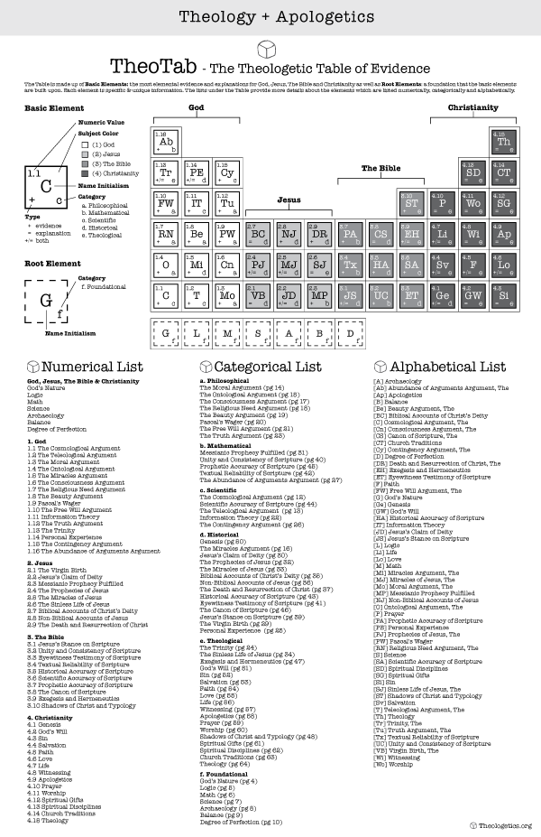 Theologetic Table of Evidence