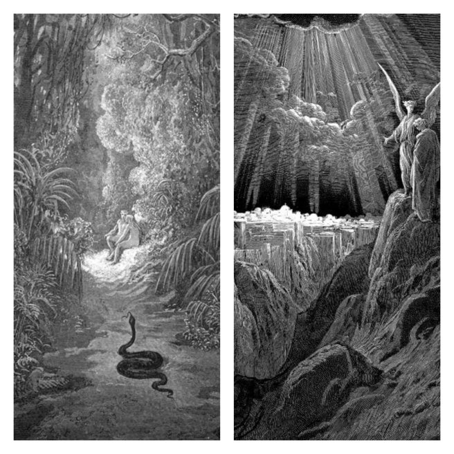 “Satan Enters Eden” and “The New Jerusalem” by Gustave Dore
